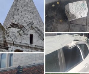 Od udara groma s tornja crkve su pali veliki komadi kamena koji su oštetili obližnje krovove obiteljskih kuća kao i automobile parkirane u podnožju crkve.