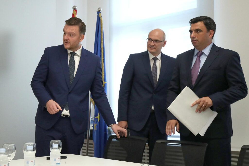 Ministar Marko Primorac je 29. kolovoza 2022. sa šefom Porezne uprave Božidarom Kutlešom i šefom Ureda za sprječavanje pranja novca Antom Bilušem objasnio kako je otkrivena pljačka Ine. FOTO: Goran Stanzl/PIXSELL