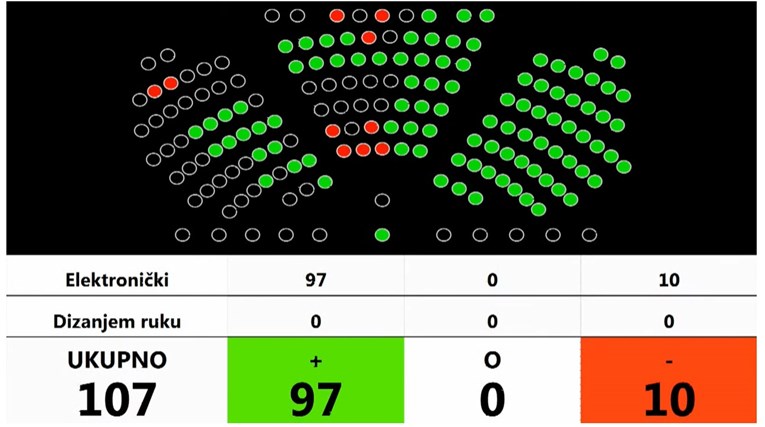 Glasalo je ukupno 107 zastupnika, odluku je podržalo 97 njih, a protiv je bilo 10 zastupnika.