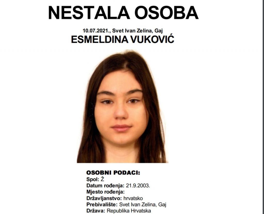 Majka Patricija Vuković traga za svojom 17-godišnjem kćeri Esmeldinom kojoj se od subote gubi svaki trag. Naime, nakon što je završila svoju smjenu u pekari na Britanskom trgu 6 u 21.30 sati, Esmeldina se nije vratila kući.